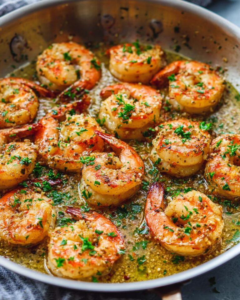 Quick and easy 10-minute garlic butter shrimp skillet recipe.