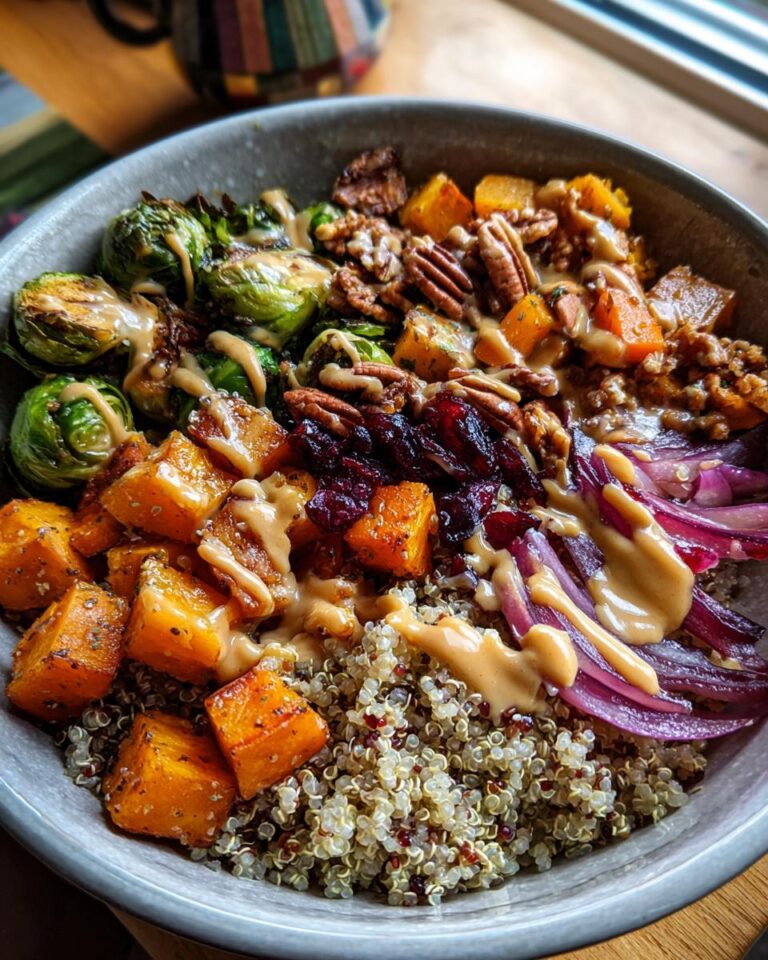 Alright, let’s get down to business and gather everything we need for these fantastic Autumn Glow Quinoa Bowls – Glow & Glaze! First up, we need 1 cup of quinoa – make sure you give it a good rinse before you start cooking, it really makes a difference. For that fluffy base, we’ll cook it in 2 cups of vegetable broth. Now for the stars of the show, the veggies! You’ll want 1 tablespoon of olive oil to get them roasting nicely. Then, grab 1 cup of butternut squash, diced into nice bite-sized pieces, and about 1 cup of Brussels sprouts, halved so they get nice and crispy. Don’t forget 1 cup of red onion, thinly sliced, to add a little zing. For that little pop of sweetness and chew, we’ll add 1 cup of dried cranberries, and for a lovely crunch, about 1/4 cup of chopped pecans. And for our amazing glaze? Whisk together 2 tablespoons of pure maple syrup, 1 tablespoon of low-sodium soy sauce (or tamari if you’re going gluten-free!), and 1 teaspoon of Dijon mustard. Easy peasy!