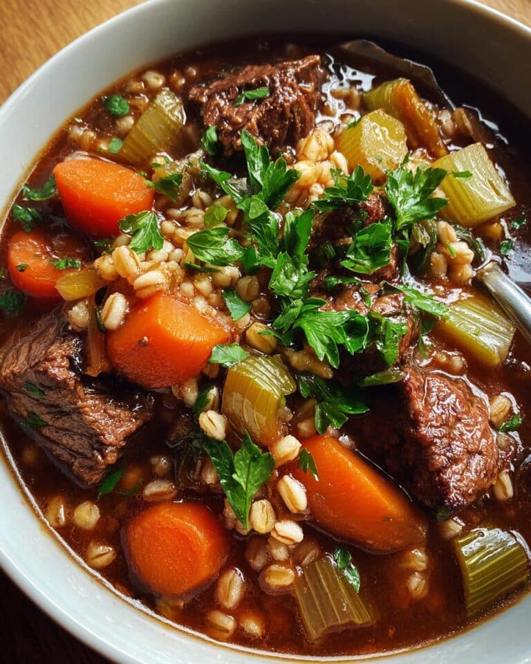 A hearty and comforting beef barley soup perfect for a chilly day. This recipe is easy to make on the stovetop and uses simple ingredients for a satisfying meal.