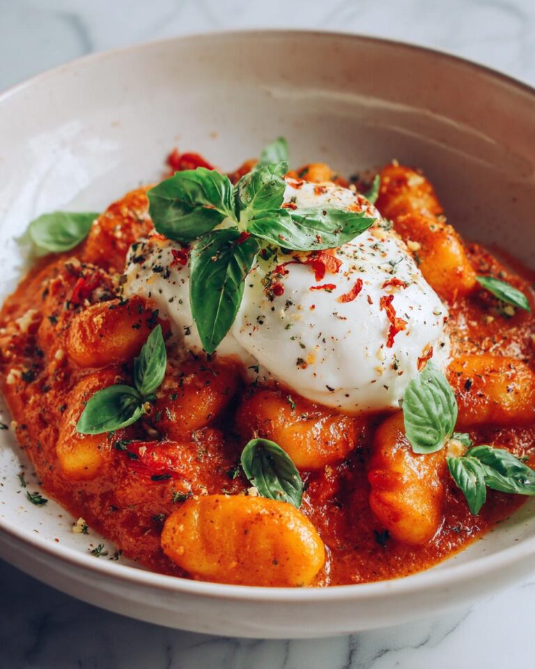 I stumbled upon this recipe a few years ago when I was *completely* swamped with work and needed something quick but also comforting. I started playing around with different flavors, and after a few tries (and a lot of taste-testing!), I landed on this gem. The creamy tomato sauce, the pillowy gnocchi, and that gorgeous, melty burrata… oh my goodness! It’s like a hug in a bowl, and the best part is, it’s so incredibly easy.