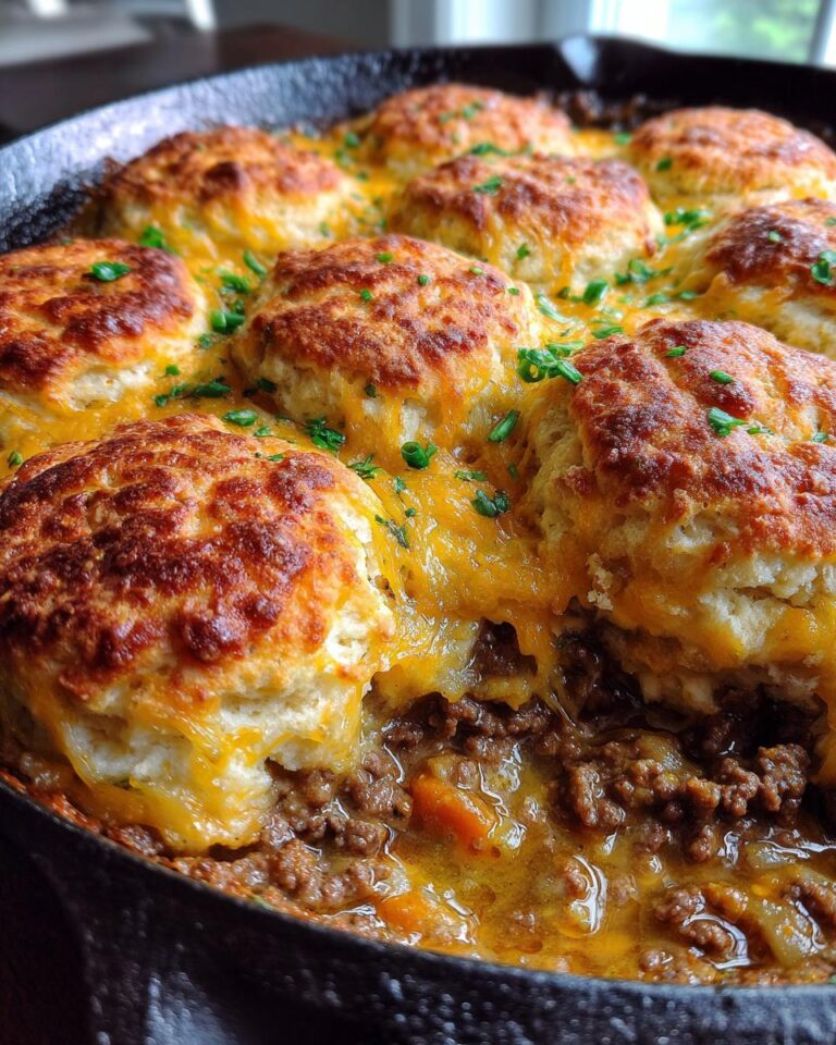 - Irresistible Flavor Combination: Imagine tender, savory ground beef swimming in a rich, tomatoey sauce, all topped with fluffy, golden biscuits bursting with cheddar cheese. It’s a flavor party in your mouth!
