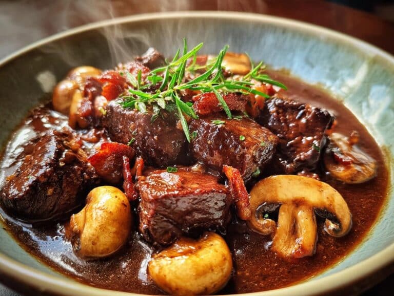I still remember the first time I made Classic Beef Bourguignon for my husband’s birthday—our tiny apartment filled with the most incredible aroma of wine, herbs, and slow-cooked beef. It felt like bringing a Parisian bistro into our humble kitchen! This iconic French stew, with its tender beef, rich red wine sauce, and earthy mushrooms, is the ultimate comfort food for chilly evenings. What I love most is how it transforms simple ingredients into something truly special with just a bit of patience. Whether you’re cooking for a date night or a cozy family dinner, this dish never fails to impress with its deep, soul-warming flavors.