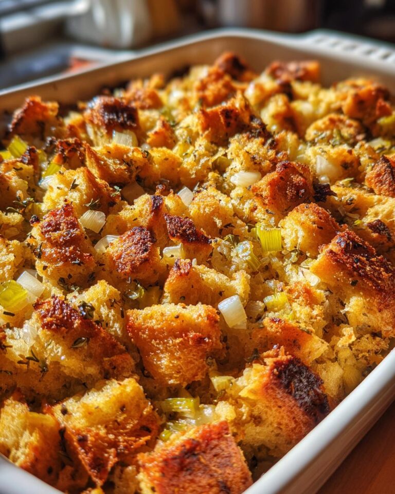 A simple and delicious classic stuffing recipe perfect for your Thanksgiving dinner. This recipe uses common ingredients and is easy to prepare.