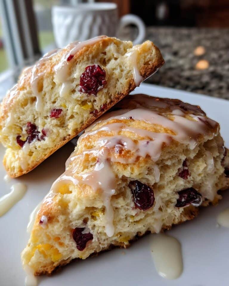 Oh, these Cranberry Orange Scones (Bakery-Style) are just pure magic! Seriously, if you’re looking for that perfect little treat to make your morning feel special, these are it. Picture this: a soft, tender crumb with little bursts of tart cranberry and a zing of fresh orange zest, all topped off with a sweet, dreamy orange glaze. They taste *exactly* like the ones you’d find at your favorite little bakery, but even better because you made them yourself! I love making a batch on a chilly Saturday morning; the smell alone is enough to make everything feel instantly cozy and bright. The secret to that incredible flaky texture? Keeping everything super cold, trust me on that!