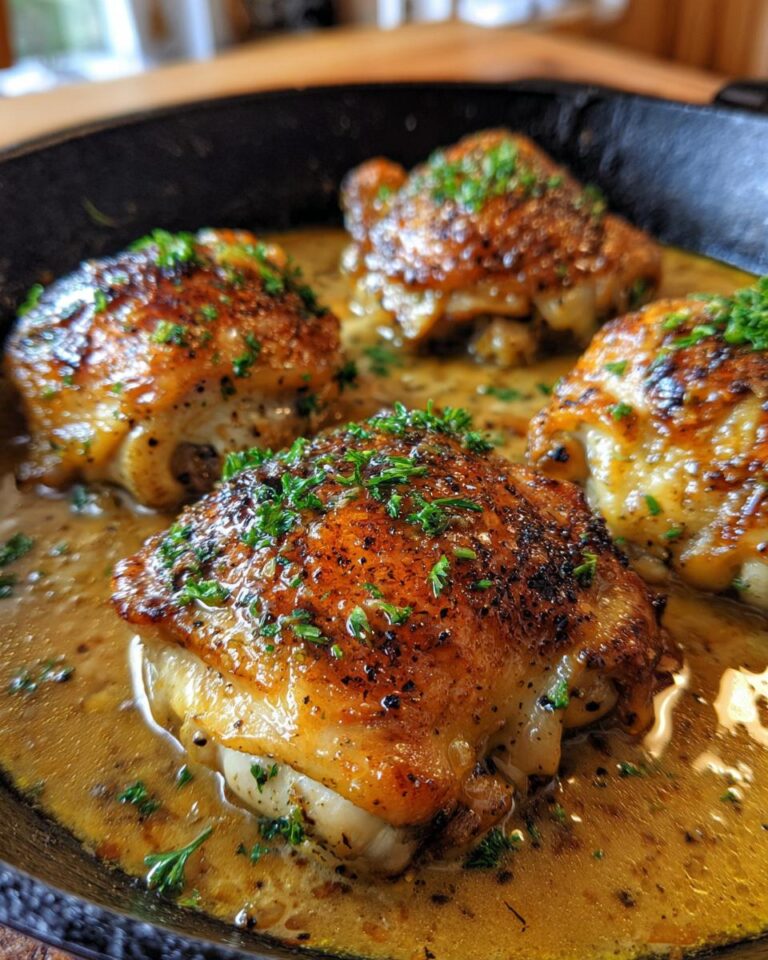 A quick and flavorful recipe for creamy brown sugar Dijon chicken thighs, perfect for a weeknight dinner.