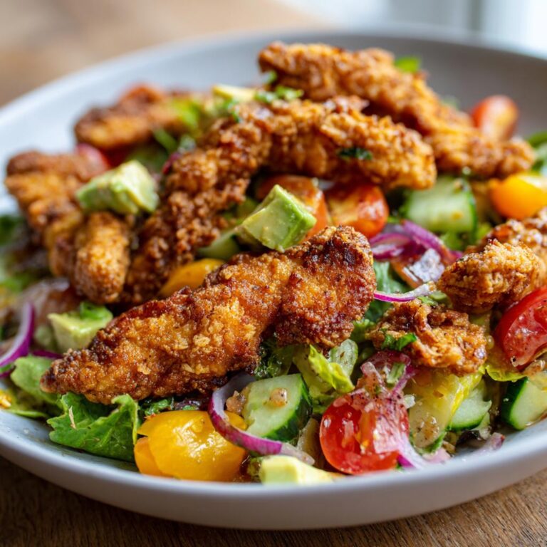 To keep your salad fresh, prep the veggies ahead of time and store them separately from the dressing. Toss everything together right before serving, so your salad doesn’t get soggy. Also, don’t be afraid to experiment with the seasoning on the chicken tenders! A little garlic powder or paprika can make a big difference. You got this!
