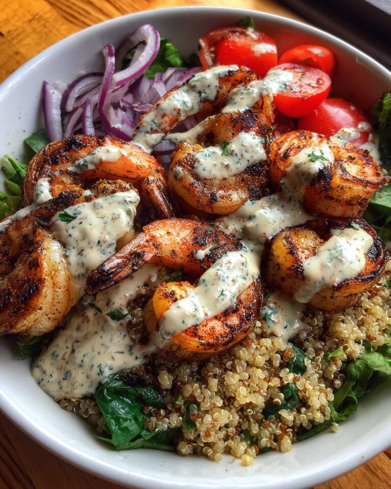 Alright, time to put it all together! First, grab your bowls. I love using clear bowls so you can see all the pretty colors. Layer in the cooked quinoa (or rice, or whatever you’re using), then pile on the mixed greens, cherry tomatoes, and red onion. Next, arrange those perfectly grilled shrimp on top. Finally, drizzle generously with that creamy garlic sauce. Doesn’t that look amazing? For a little extra flair, you could sprinkle on some extra parsley or a squeeze of lemon. And there you have it, your *Grilled Shrimp Bowl* is ready to devour! Yum!
