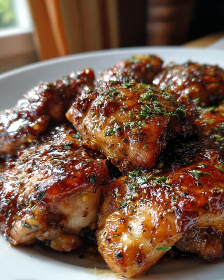 A simple and delicious recipe for honey garlic chicken thighs, featuring tender chicken coated in a sweet and savory glaze. Perfect for a quick weeknight dinner.