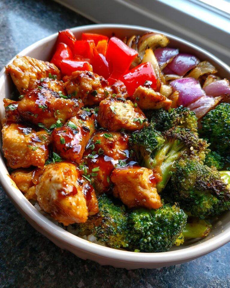 Step-by-Step Instructions for Making *Honey Garlic Chicken & Roasted Veggie Bowls*