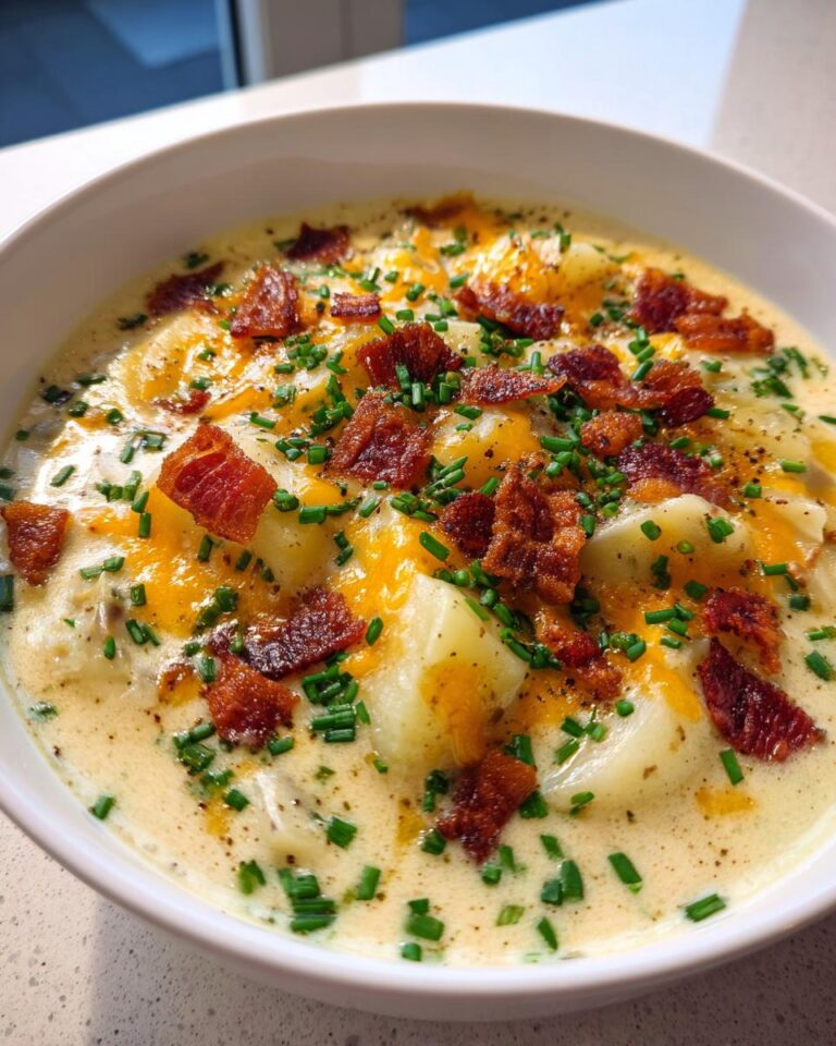 I remember when I was a kid and my mom would make this soup. It always made me feel so warm and loved. Now, I make it for my family, and it brings back all those amazing memories. This soup is rich, creamy, and loaded with all the best toppings: crispy bacon, sharp cheddar cheese, and fresh chives. You’re going to love it! It’s the perfect way to turn a simple baked potato into something truly special.