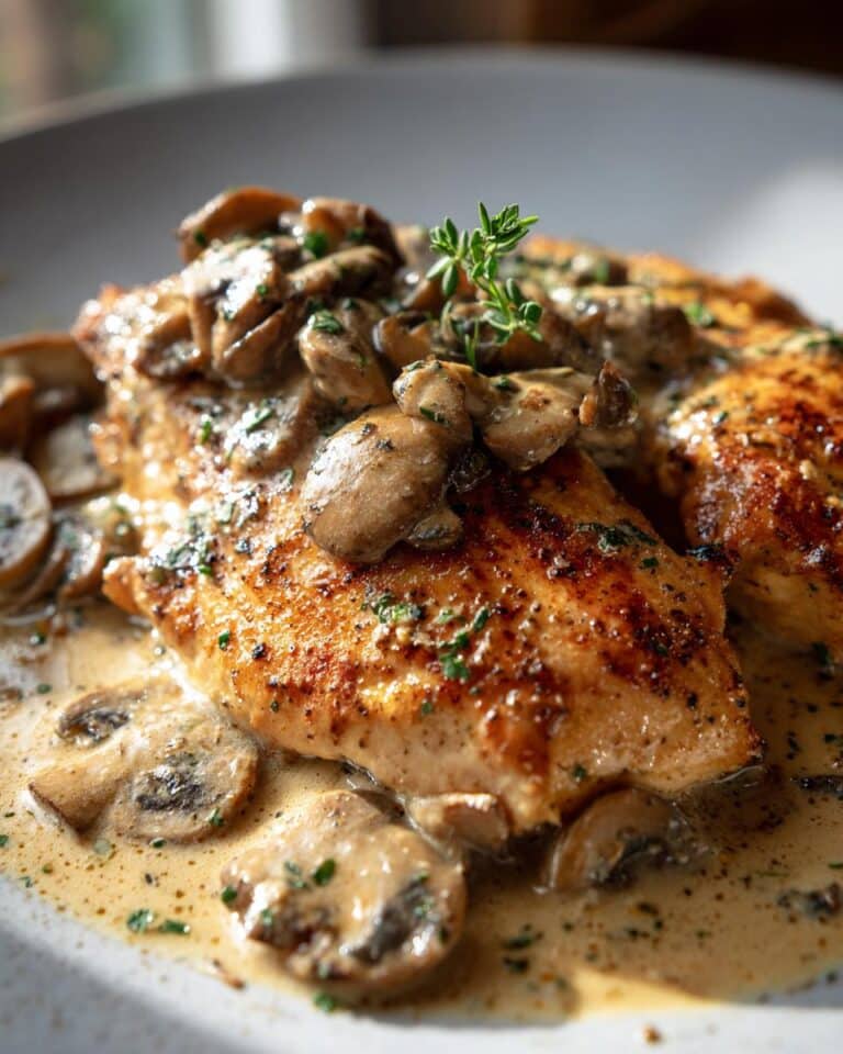 In that same skillet, add your remaining tablespoon of butter. Toss in your sliced mushrooms and let them soften up and get a little brown, about 5 minutes. This is where the flavor really starts building! Now for the fun part: pour in that Marsala wine and the chicken broth. Use your spoon to scrape up all those yummy browned bits from the bottom of the pan – that’s pure flavor gold! Let that simmer away for about 5-7 minutes. You’ll see it reducing and thickening up, which is exactly what we want. Finally, stir in that tablespoon of heavy cream. It’ll make the sauce wonderfully rich and smooth. Give it a taste and add more salt and pepper if needed. Pop your chicken back into the pan, spoon that glorious sauce all over the top, and voilà! Dinner is served. It’s such a satisfying One Dish Kitchen Recipe.