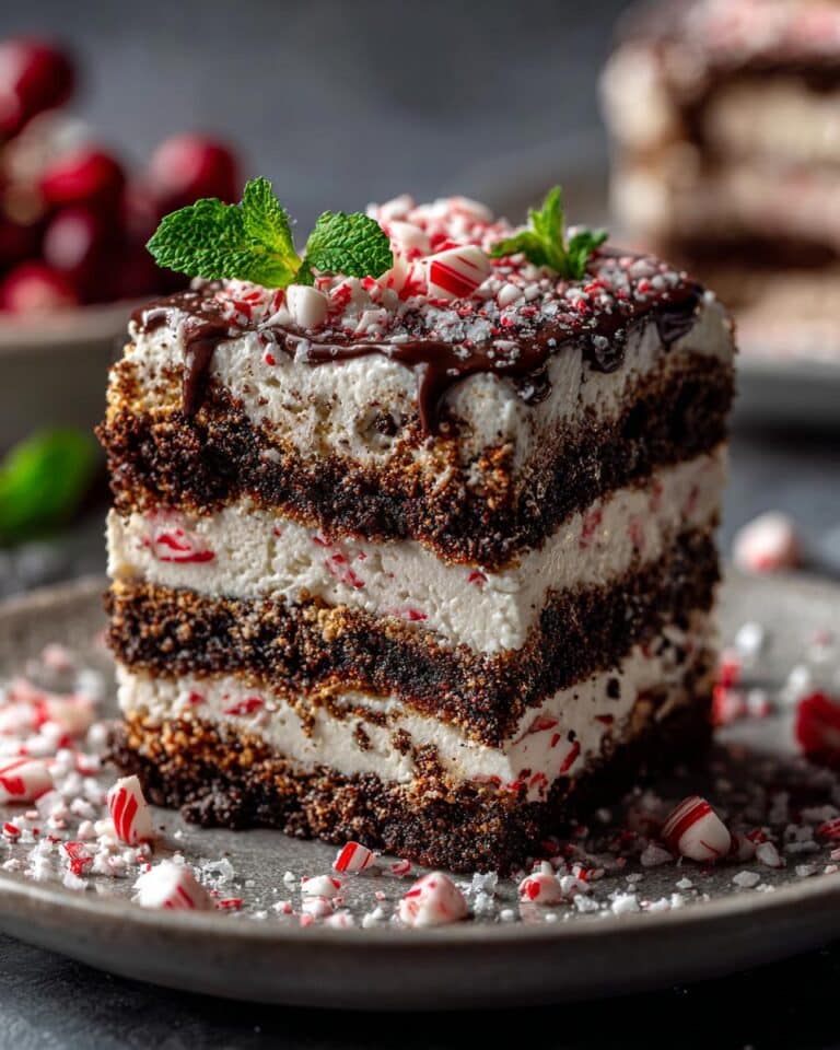 - Is this a good holiday dessert idea? YES! This is one of my favorite holiday dessert ideas. The combination of chocolate and peppermint just screams festive cheer, and it’s such an easy no bake cake that you can whip up when you’re busy with other holiday preparations. It’s always a winner!