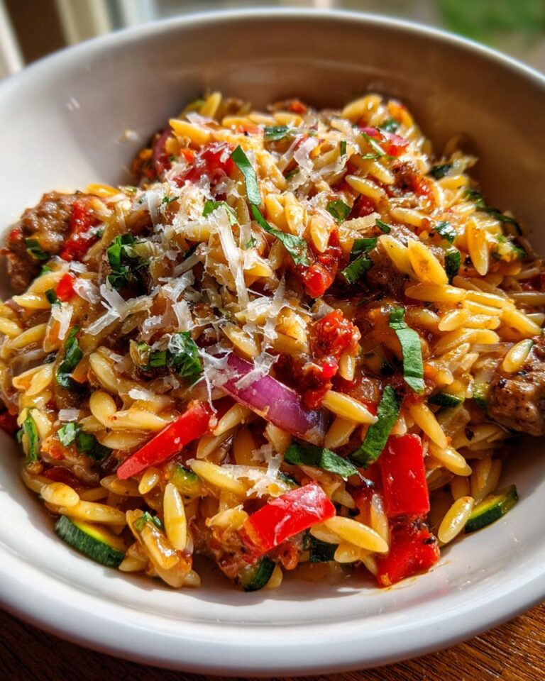 - Flavor Explosion: The combination of savory sausage, tender orzo, and those perfectly sautéed veggies? Pure bliss! It’s a flavor party in your mouth.