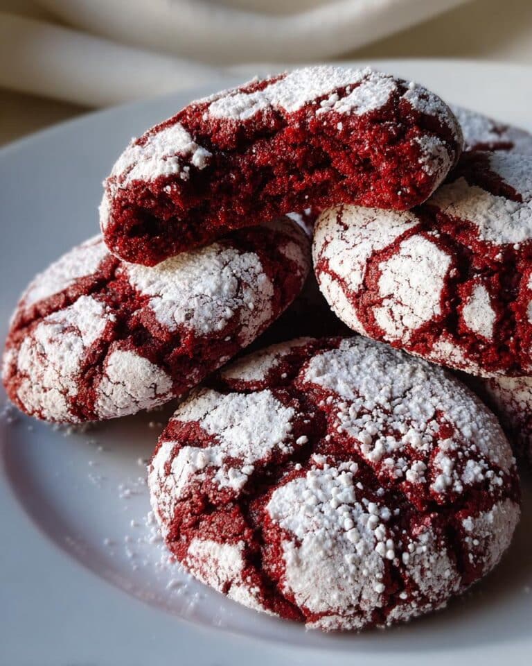 These Red Velvet Crinkle Cookies are soft, fudgy, and coated in a snowy powdered sugar finish, making them a perfect festive treat for any occasion.