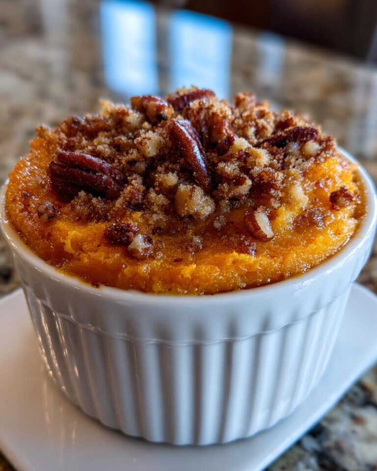 A copycat recipe for Ruth’s Chris Sweet Potato Casserole, featuring a creamy sweet potato base topped with a crunchy pecan streusel. This dish is a perfect addition to holiday meals, especially Thanksgiving.