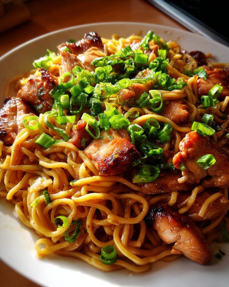 And that’s it! Serve your Sticky Garlic Chicken Noodles immediately, while they’re still hot and delicious. Now, for the final touch: sprinkle some fresh green onions on top for a pop of color and extra flavor. You’re ready to eat! Enjoy your easy weeknight dinner!