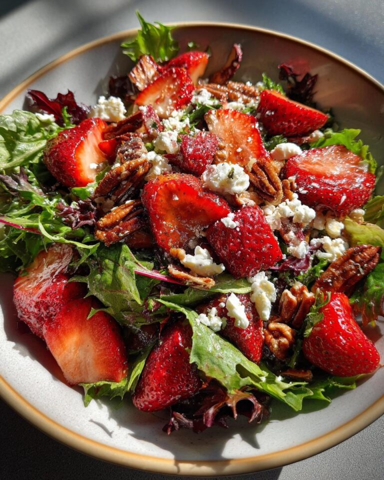 A refreshing salad featuring strawberries and a light champagne vinaigrette.