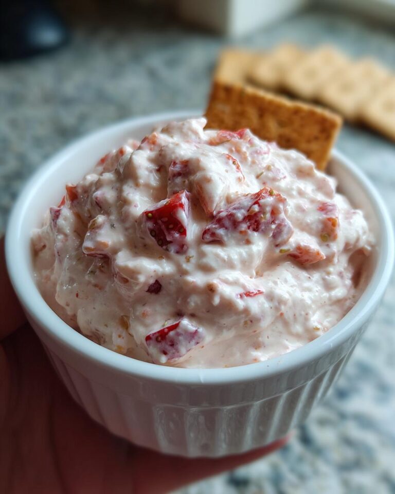 Now, for the stars of the show: the fresh strawberries! Make sure you chop them up into nice, small pieces. You want them to be bite-sized so you get a little burst of strawberry flavor in every single spoonful. Add those chopped beauties to the mix and gently fold them in. Don’t go crazy, just enough to distribute those yummy berries throughout the dip.